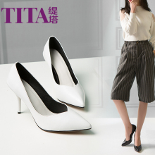 缇塔韩版气质高跟鞋细跟2016春夏季新款真皮工作鞋女白色尖头单鞋