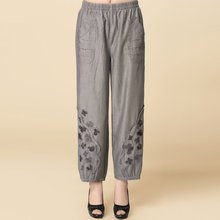 有时候中老年女装春装裤子 妈妈装休闲裤牛仔裤民族风刺绣灯笼裤