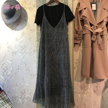 2017夏季新款吊带长裙亮丝荷叶边连衣裙均码显瘦