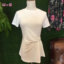 2017春夏新款韩版圆领纯色均码短袖收腰上衣修身显瘦不规则T恤女