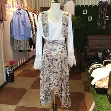 2017春夏新款碎花雪纺背带裙韩版宽松女高腰印花中长款连衣裙子