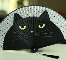 【外贸精品扇】日式和风折扇 竹柄扇子 礼品扇 可爱女扇 手绘猫咪