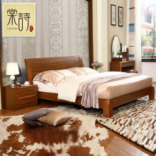 棠诗 实木双人床1.5 1.8米中式简约胡桃木储物高箱婚床卧室家具