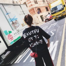 2017新款韩版宽松黑色港风短袖T恤 女夏原宿bf学生百搭港味半截袖
