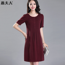 真丝连衣裙夏新款2017修身显瘦中长款妈妈重磅桑蚕丝裙子气质女装