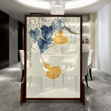实木环保客厅玄关隔断中式风水半透明纱屏风【赐福葫芦】