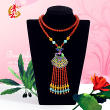 普云长款民族风毛衣链天然红玛瑙项链百搭景泰蓝女链简约陶瓷饰品