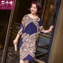 乐卡索中年女装夏装连衣裙中老年大码夏季胖妈妈装40-50岁复古裙