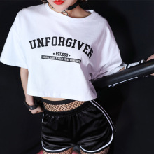 赤黑原创夏季新款嘻哈jazz街舞女装宽松字母印花短款露腰T恤