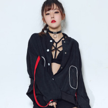 赤黑原创春季新款嘻哈jazz街舞露腰宽松字母印花短卫衣 女装