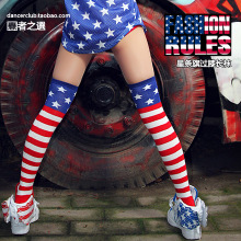 五角星条旗美国国旗条纹过膝大腿袜ds表演嘻哈JAZZ街舞长高筒袜子
