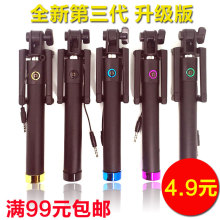 三代线控手机通用卡通自拍杆迷你自拍神器凹槽折叠一体式拍照相机