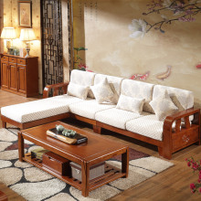 实木沙发组合 中式沙发 实木转角贵妃布艺沙发L型组合