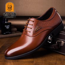 老人头正品春秋季男鞋商务正装男士皮鞋真皮英伦婚鞋系带潮流皮鞋