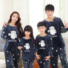 2016秋冬季加厚珊瑚绒亲子睡衣家庭装卡通母女法兰绒一家三口套装
