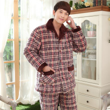 冬季男士三层加厚加肥加大码超柔珊瑚绒夹棉睡衣法兰绒保暖家居服