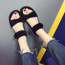 2017新款百搭凉鞋女夏平底韩版学生简约平跟厚底魔术贴露趾沙滩鞋