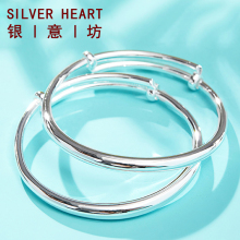 银意坊银饰999纯银手镯女开口足银镯子送女友生日简约银饰品手环