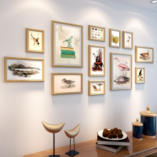 欧式实木照片墙客厅装饰画简约相片墙复古鹿头悬挂创意相框墙组合