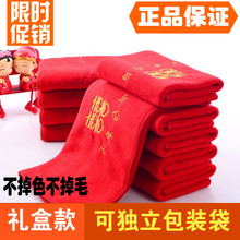 结婚回礼盒装超细纤维比纯棉柔软大红色喜字毛巾方巾批发婚庆用品