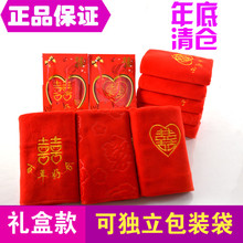 婚庆用品婚礼盒装大红色洗脸毛巾全棉喜字结婚回礼品加厚纯棉批發