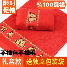 纯棉毛巾批發全棉手巾礼盒婚庆用品回礼情侣全大红色结婚礼品喜字