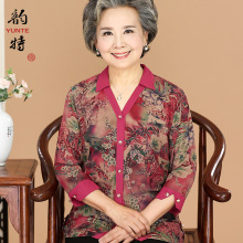 老年人春装衬衫女奶奶装九分袖开衫衬衣妈妈装上衣夏季中老年女装