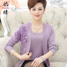 韵特妈妈装春秋装外套新品中老年女装40-50真两件开衫针织打底衫