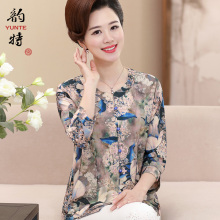 奶奶装长袖雪纺T恤中老年人女宽松衬衫上衣60-70岁妈妈装春装衬衣
