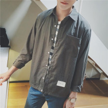 ◤简宿◢春季新款韩版绿色日韩时尚潮流修身纯色男长袖衬衫上衣