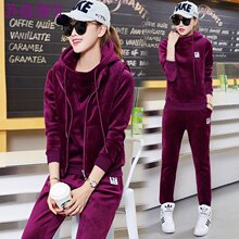 2016冬装新款卫衣三件套加厚加绒保暖金丝绒休闲运动服套装女秋冬