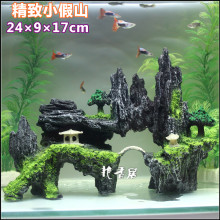 鱼缸假山仿真 造景装饰水族箱设计 山石桥亭摆设假山石
