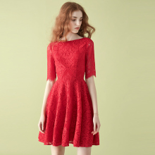 芳染春秋季新款红色新娘敬酒服短款主持人晚宴会小礼服蕾丝连衣裙