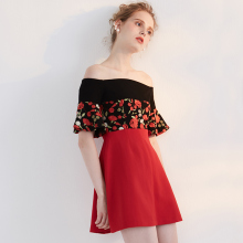 2017新款春秋季蕾丝宴会晚礼服新娘敬酒服一字肩短款小礼服连衣裙