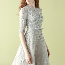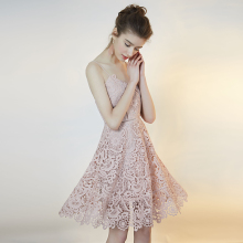 名媛宴会晚礼服短款春装女新款伴娘小礼服显瘦蕾丝连衣裙春秋典藏