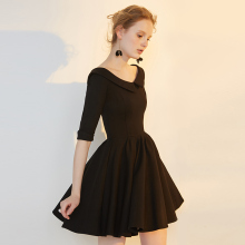 初见 V领中袖短款小黑裙宴会小礼服裙赫本复古连衣裙春秋2017新款