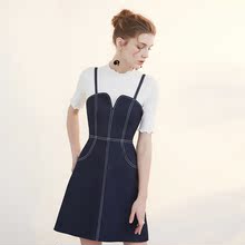 衣纱布菲如歌 2017春装新款女装牛仔吊带背带裙子春秋a字连衣裙