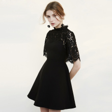 夜空 黑色中袖显瘦短款聚会年会宴会舞会晚礼服小礼服蕾丝连衣裙