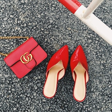 2017夏季新款鞋子红色高跟拖鞋女夏时尚韩版外穿包头细跟凉拖鞋