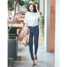 女韩国百搭弹力修身显瘦中高腰打底牛仔裤小脚裤 K9855