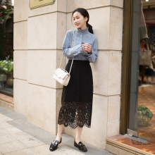Mshop 2017春季新品韩版淑女气质松紧腰花边蕾丝裙中长裙半身裙