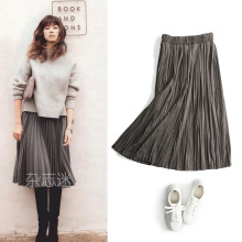 Mshop 新款松紧腰百褶半裙中长款麂皮A字风琴褶大摆裙
