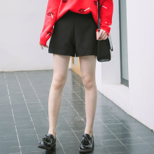 Mshop 百搭复古高腰阔腿黑色短裤靴裤女