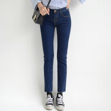 春装显瘦紧身包腿铅笔裤高弹力小脚裤韩版裤子深蓝色高腰牛仔裤女