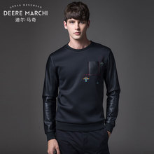 迪尔马奇春装新款趣味飞机刺绣拼皮太空棉男圆领卫衣M08532