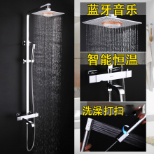 文洁智能恒温蓝牙音乐花洒套装淋浴室龙头全铜增压方形淋雨器明装