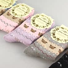 袜子女 秋冬款可爱卡通女士兔羊毛袜 三只小熊女士羊毛袜加厚保暖