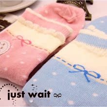 袜子批发 韩国可爱夏季短袜棉袜蝴蝶结波点船袜圆点袜百搭潮流袜