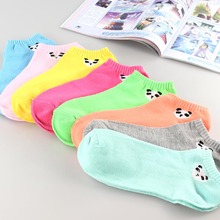 短袜子女 韩国可爱侧边小熊猫女士卡通糖果色船袜百搭短袜卡通袜