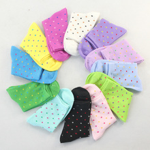 中筒袜子女 韩国学院风可爱翻边点点女袜糖果色中筒袜棉袜短袜